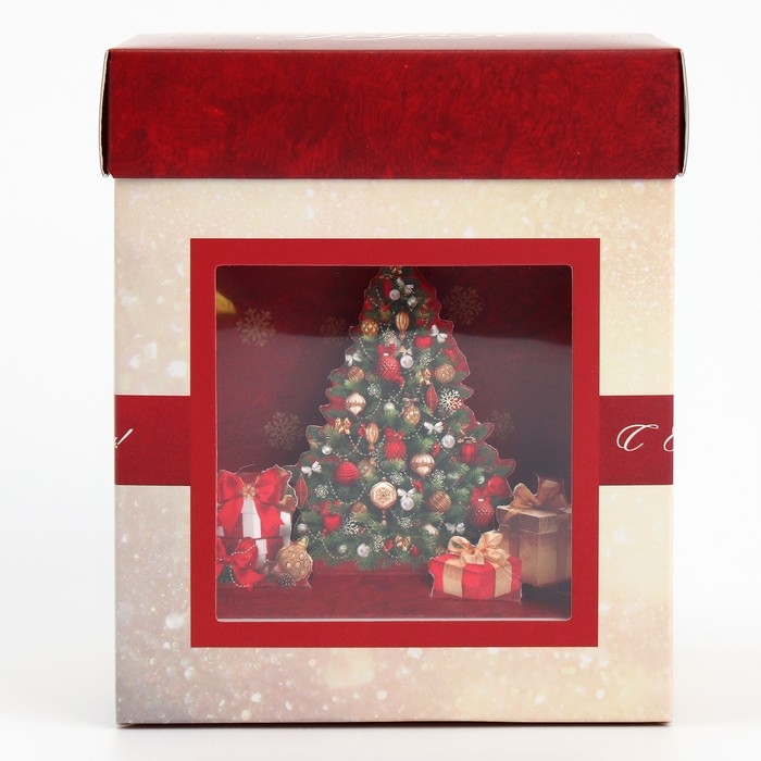 Подарочная коробка новогодняя складная с 3D эффектом «С Новым годом», ёлочка, 11 х 11 х 13 см, Новый год
