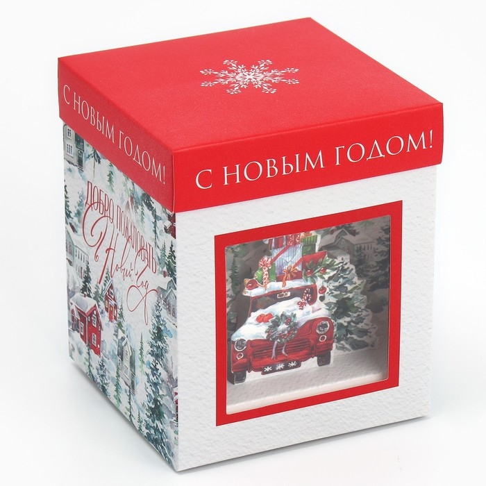 Коробка подарочная новогодняя складная с 3D эффектом «Добро пожаловать в Новый год», 11 х 11 х 13 см, Новый год