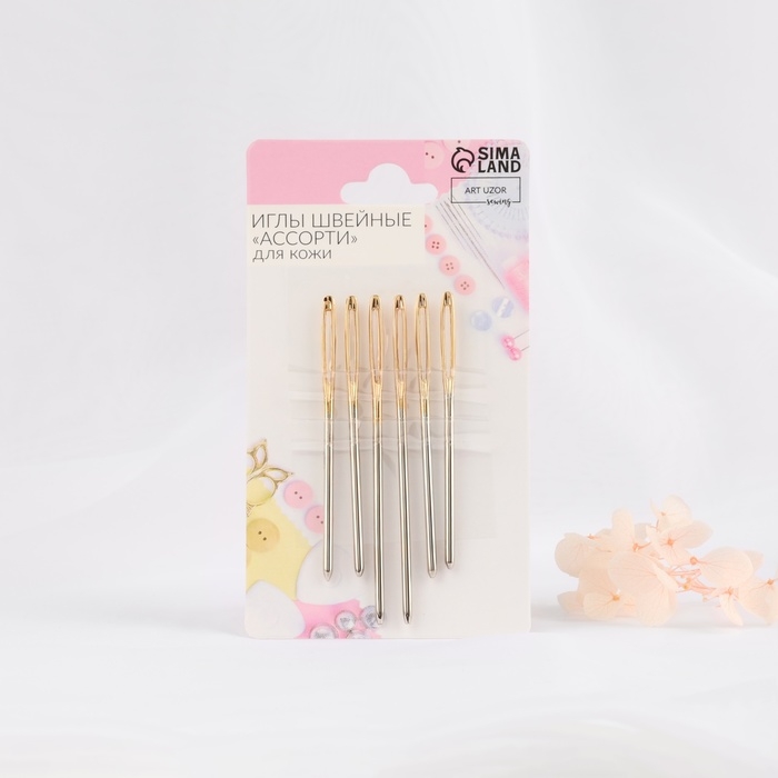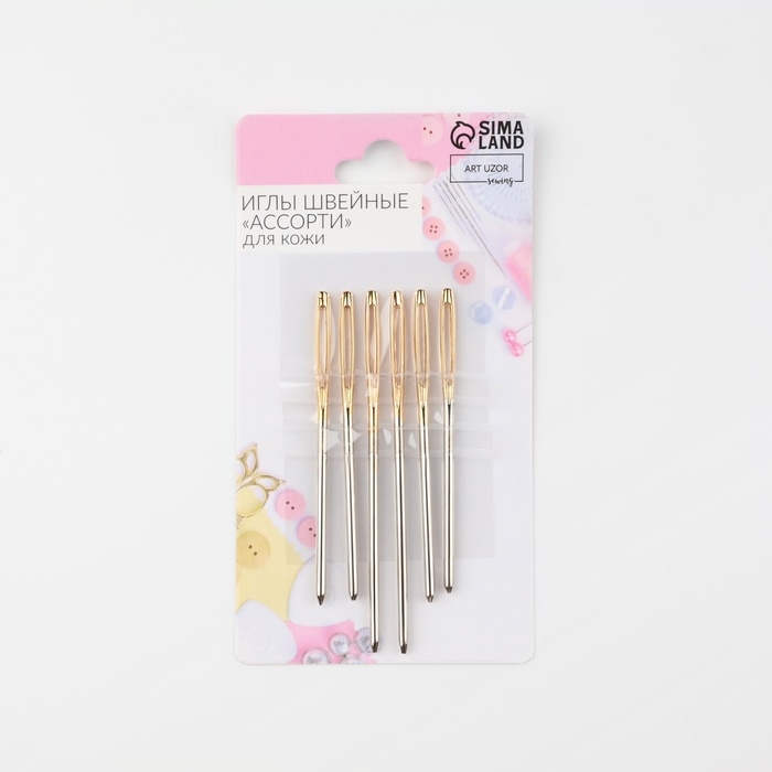 Иглы швейные, для кожи, с золотым ушком, d = 2 мм, 6 / 7 см, 6 шт