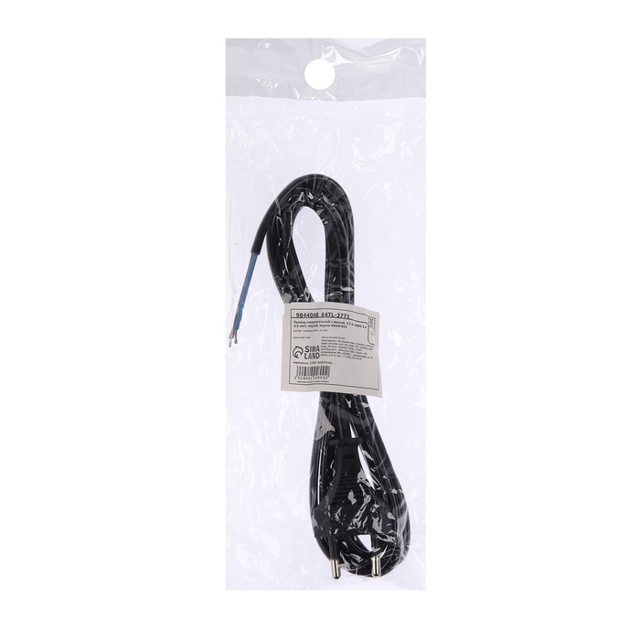 Шнур сетевой с вилкой, 2,5 м, ШВВП 2 х 0.5 мм2, черный