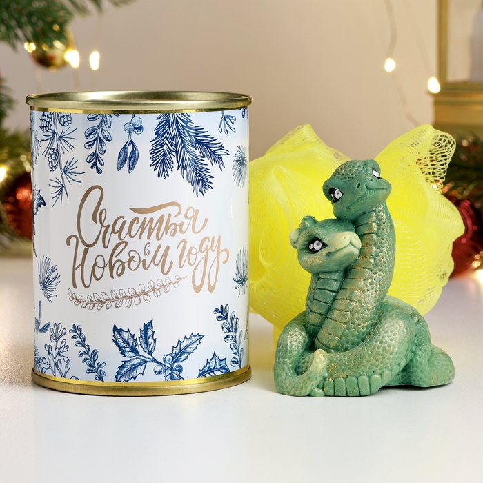 Набор в консервной банке "Счастья в новом году" мыло + мочалка