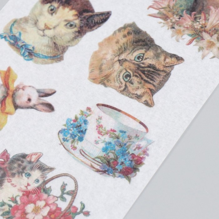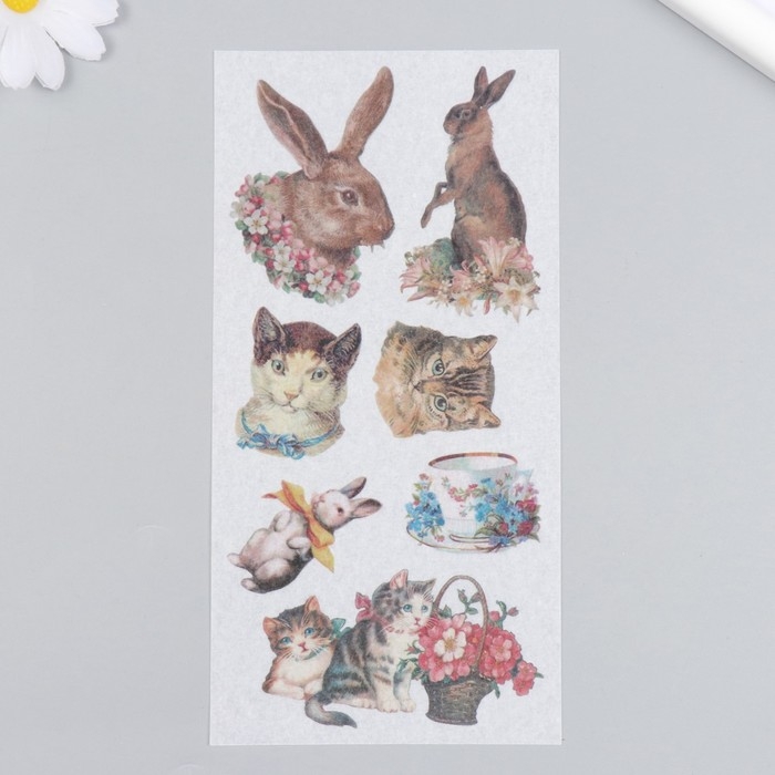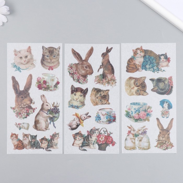Наклейки для творчества бумага "Кошечки и кролики" набор 3 листа 10х20 см
