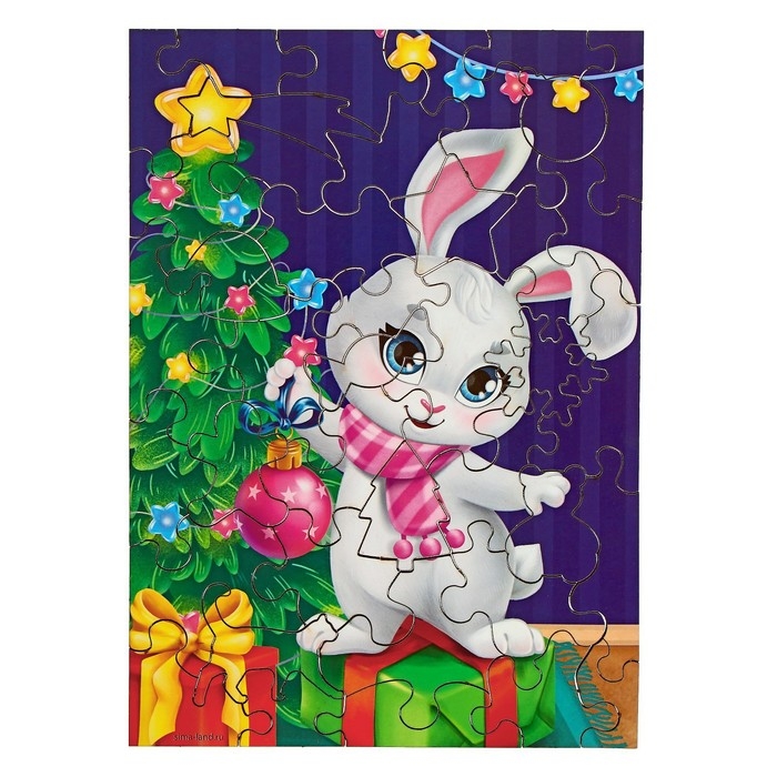 Деревянный пазл фигурный «Новый год! Поздравление от зайки»