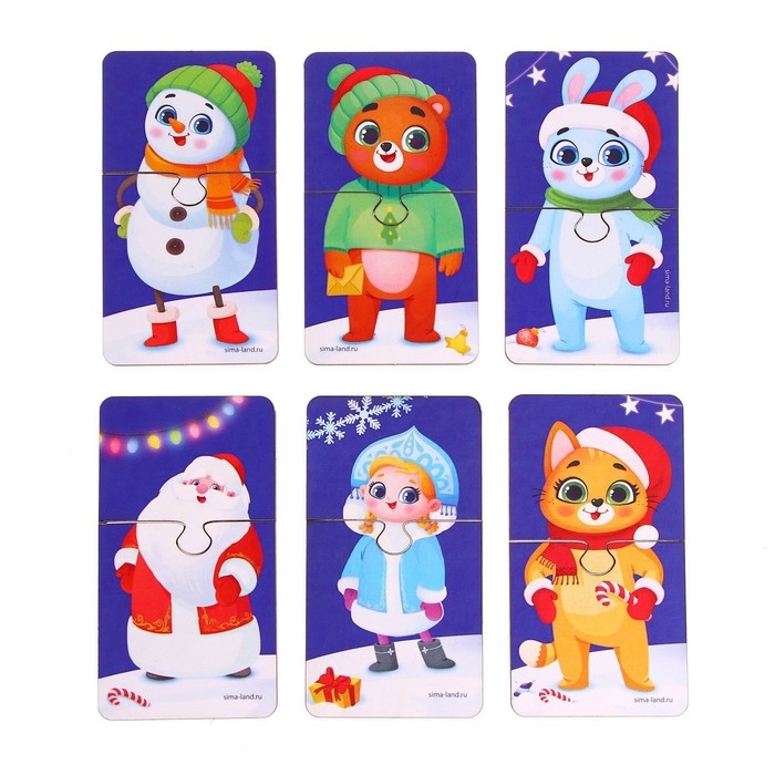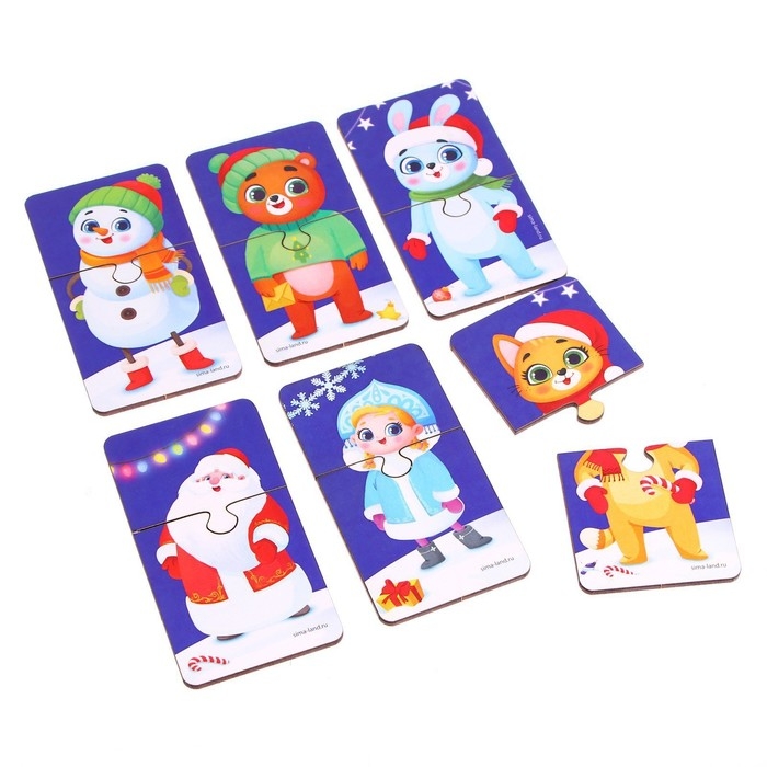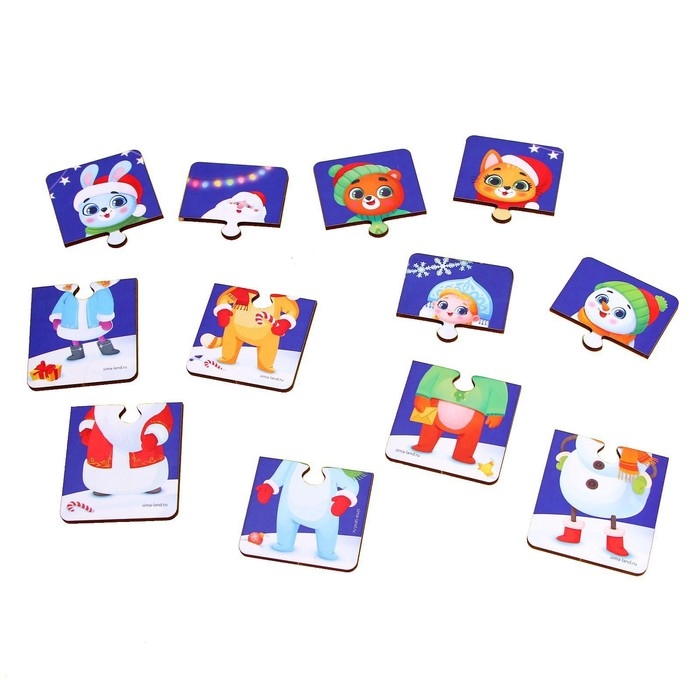 Новогодние пазлы-половинки «Новый год! Новогодняя кутерьма» — это деревянная развивающая игрушка, которая поможет ребёнку развить логику, внимание и мелкую моторику. Пазлы выполнены в яркой новогодней тематике и предлагают собрать разных новогодних персонажей.