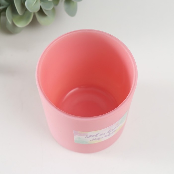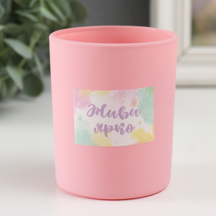 Банка для свечей стекло "Живи ярко" 220 мл розовая, матовая 7х7х8,4 см