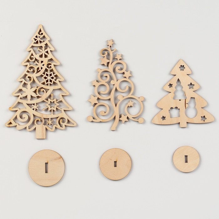 Заготовки для творчества на новый год «Елочки на подставке», 3 шт
