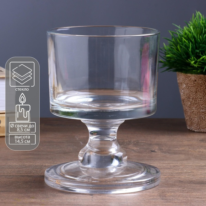 Подсвечник стекло на 1 свечу "Широкий низкий бокал" прозрачный 14,5х11х11 см
