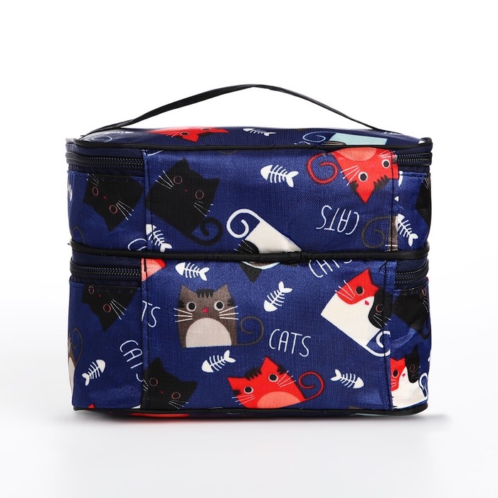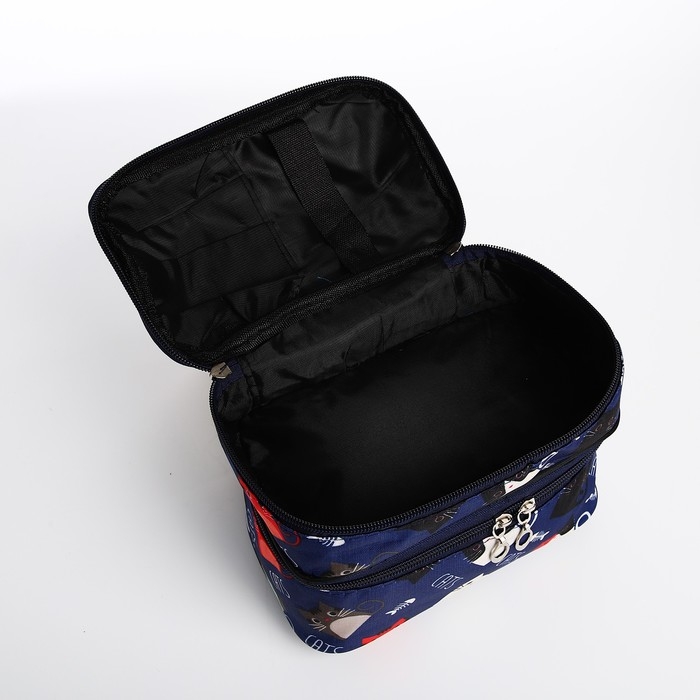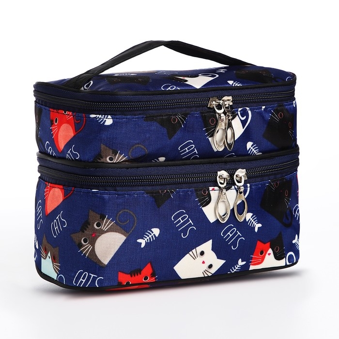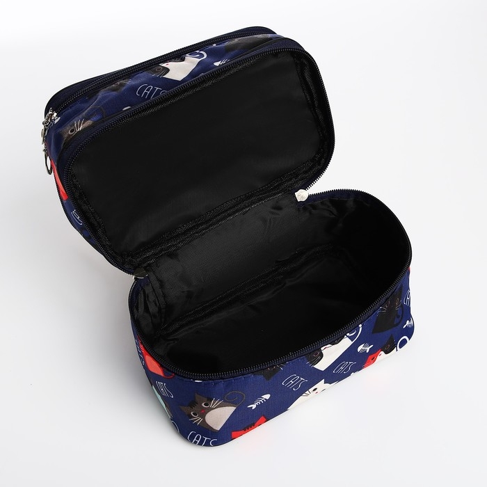 Косметичка, 2 отдела на молниях, цвет синий