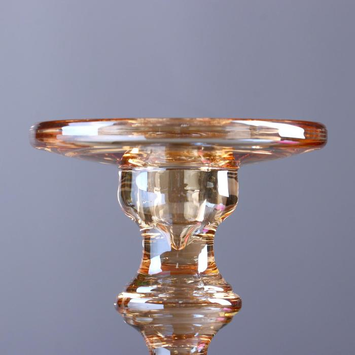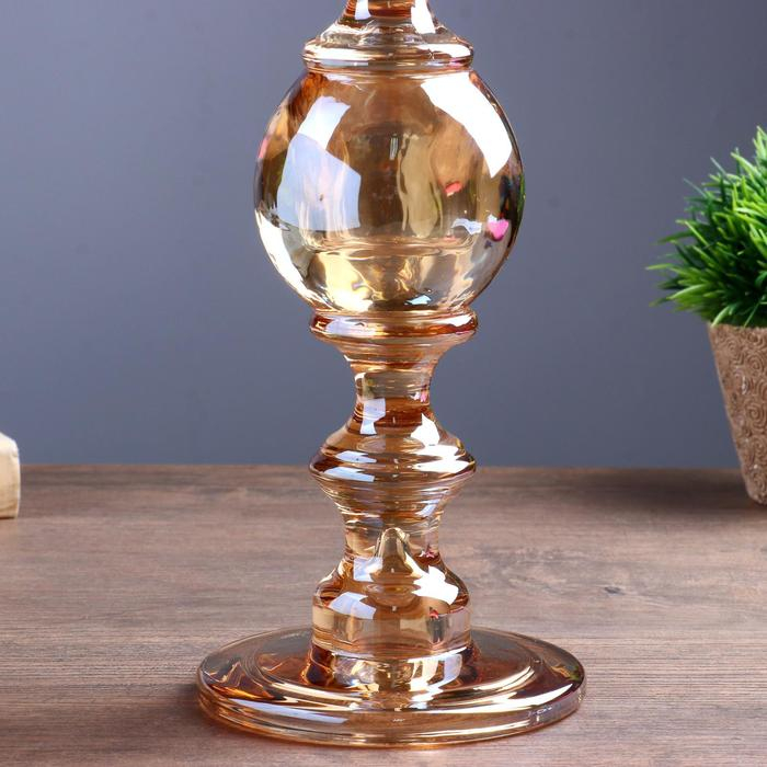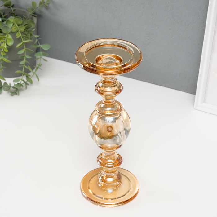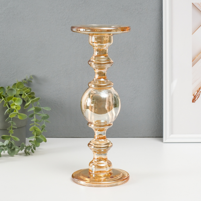 Подсвечник стекло на 1 свечу двусторонний "Классический с шаром" карамельный 30х11,3х11,3 см