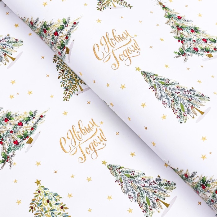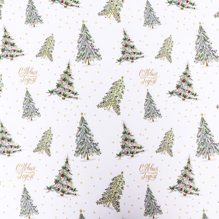 Новый год. Бумага упаковочная новогодняя глянцевая "Ёлки ", 70 х 100 см.