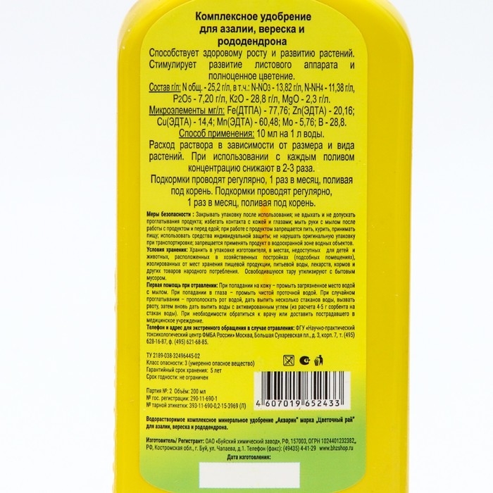 Жидкое комплексное удобрение "Цветочный рай" для азалии, вереска и рододендрона, 200 мл