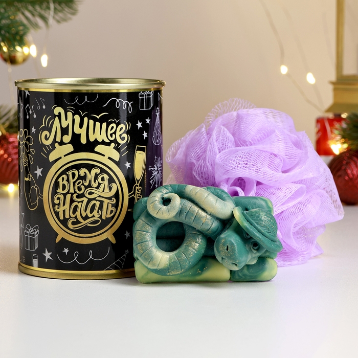 Набор в консервной банке "Лучшее время начать" мыло + мочалка