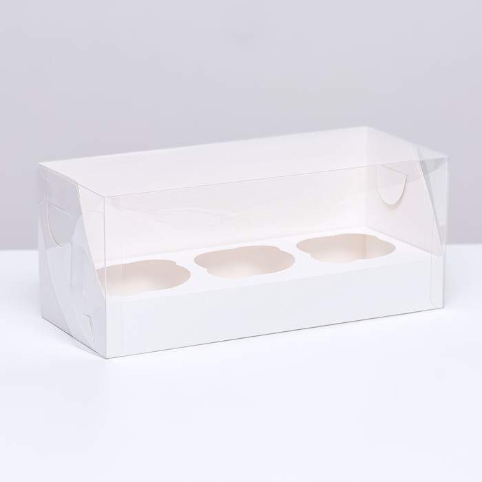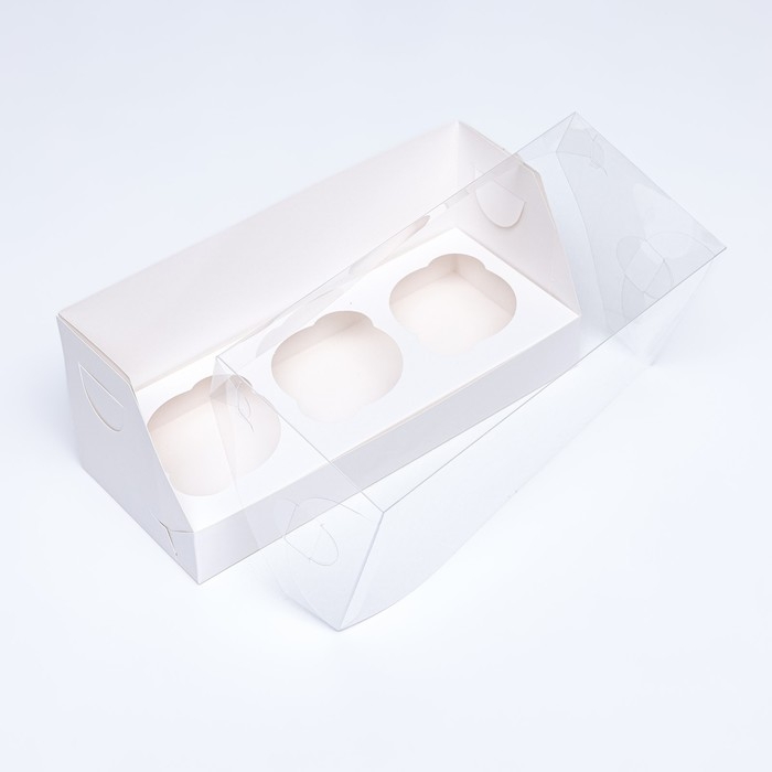 Коробка для 3 капкейка 24х10х10, Белый