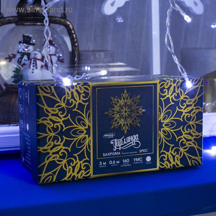 Гирлянда «Бахрома» 3 × 0.6 м, IP44, УМС, прозрачная нить, 160 SMD-LED, свечение белое, 220 В