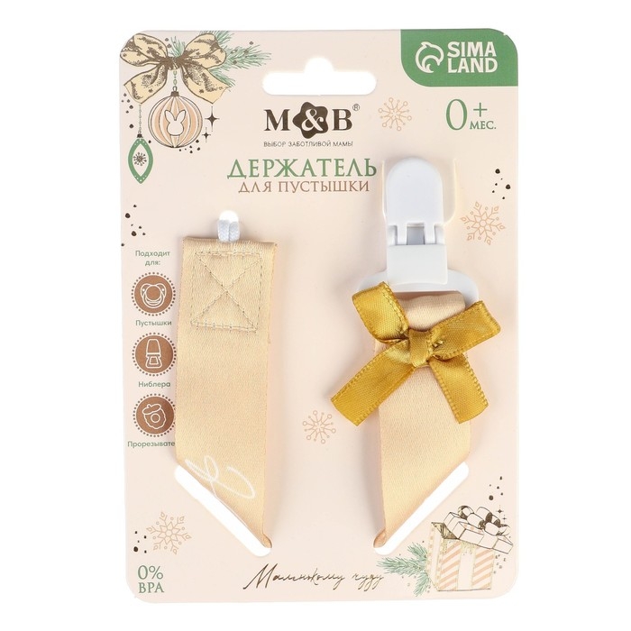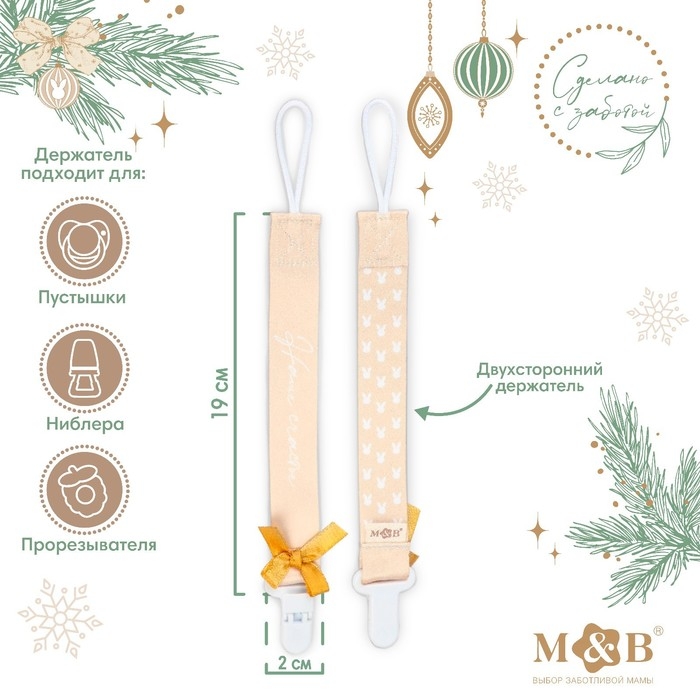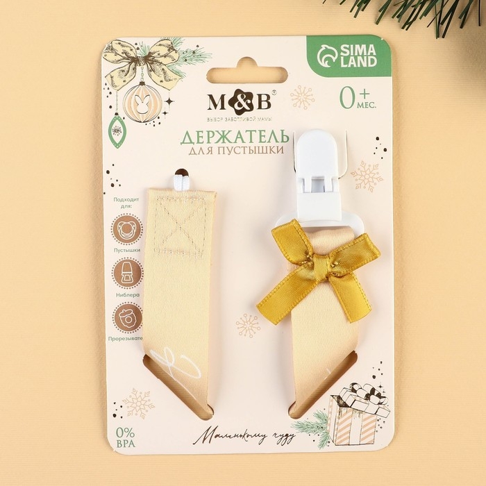 Держатель для соски - пустышки «Наше счастье», новогодний, на ленте, подарочная упаковка