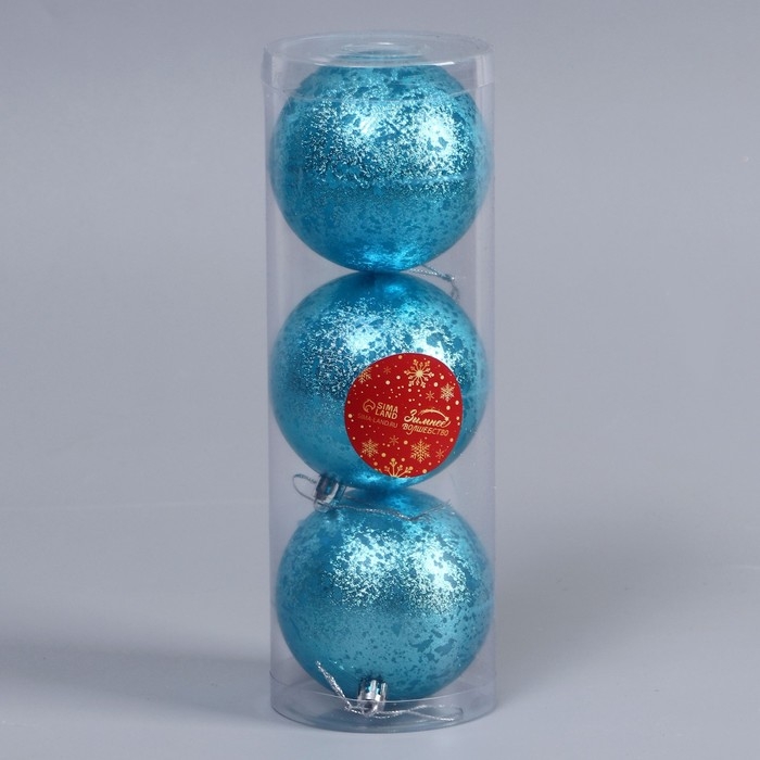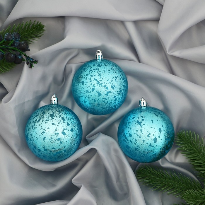 Набор шаров пластик d-8 см, 3 шт «Ретро» голубой