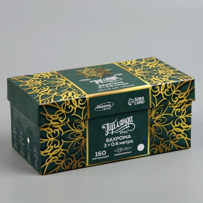 Гирлянда «Бахрома» 3 × 0.6 м, IP44, УМС, тёмная нить, 160 SMD-LED, свечение белое, 220 В
