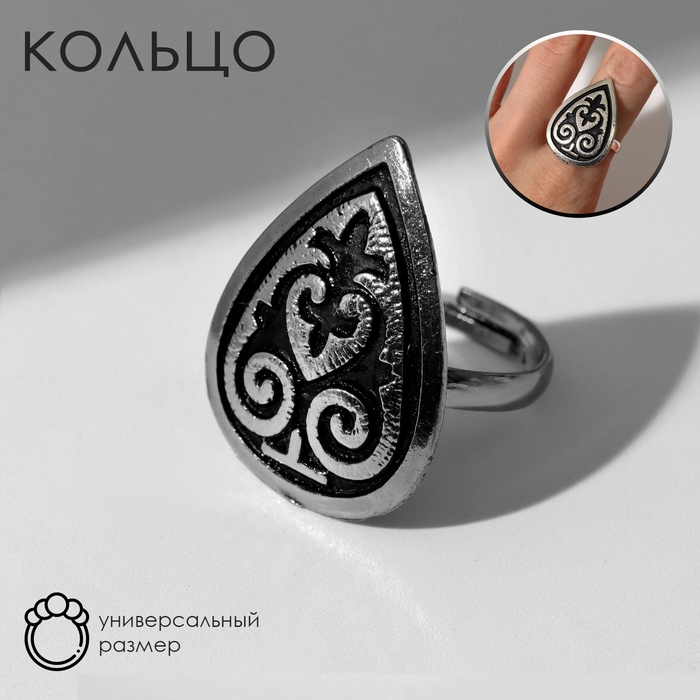 Кольцо «Этника» графский узор, цвет чернёное серебро, безразмерное