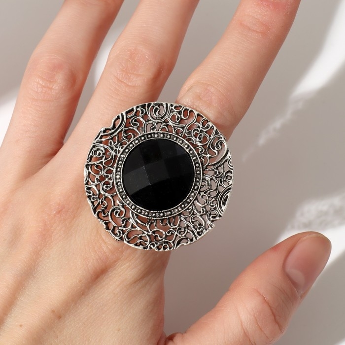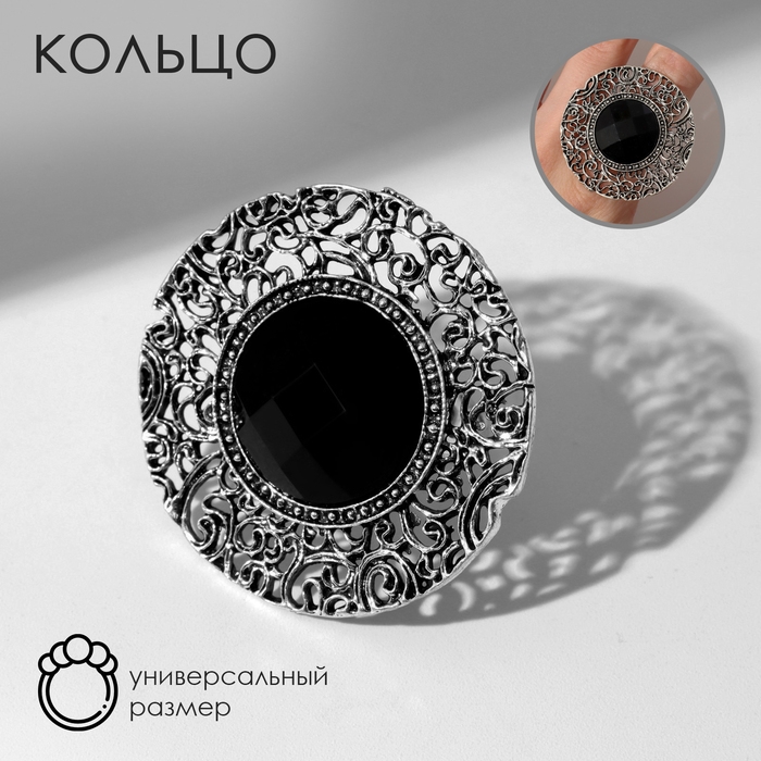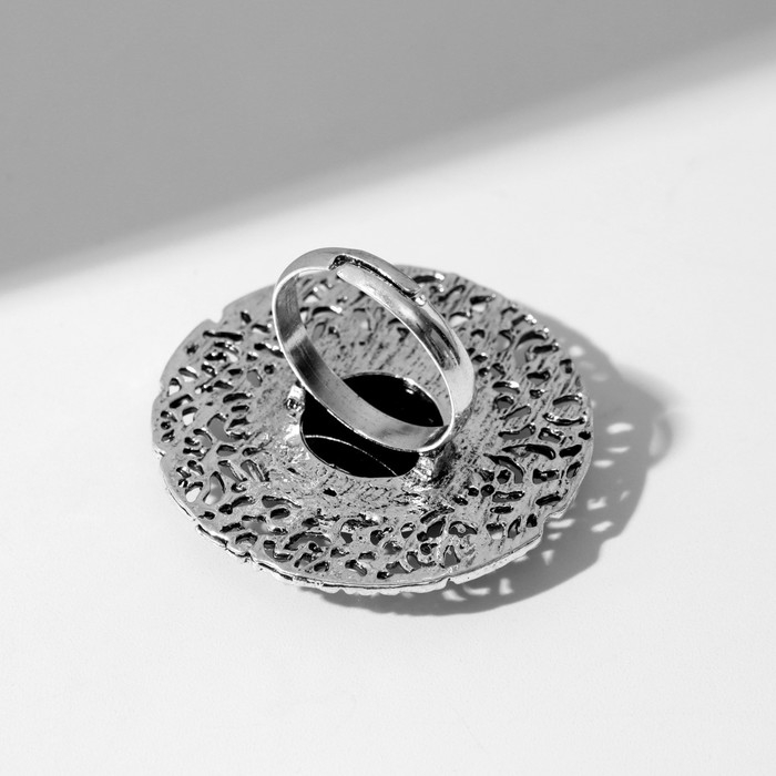 Кольцо «Этника» ажурный круг, цвет чёрный в чернёном серебре, безразмерное