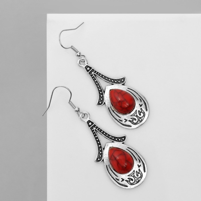 Серьги «Этника» объёмная капля, цвет красный в чернёном серебре