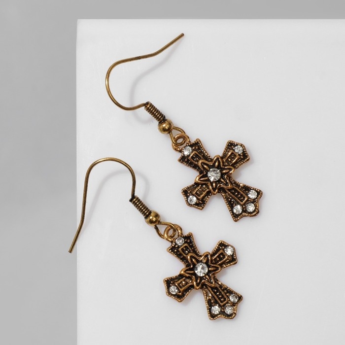 Серьги «Крестики» цветочные, цвет белый в чернёном золоте