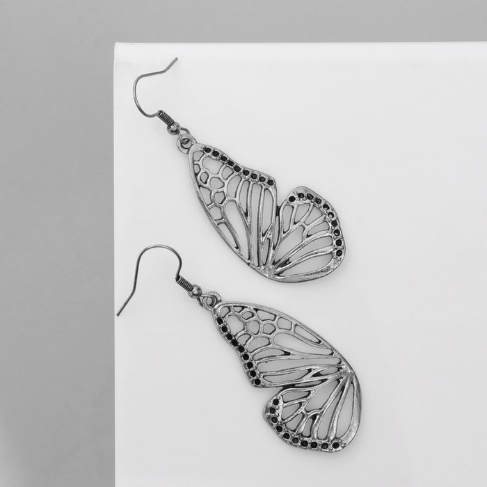 Серьги «Бабочки» крылья, цвет чёрный в чернёном серебре