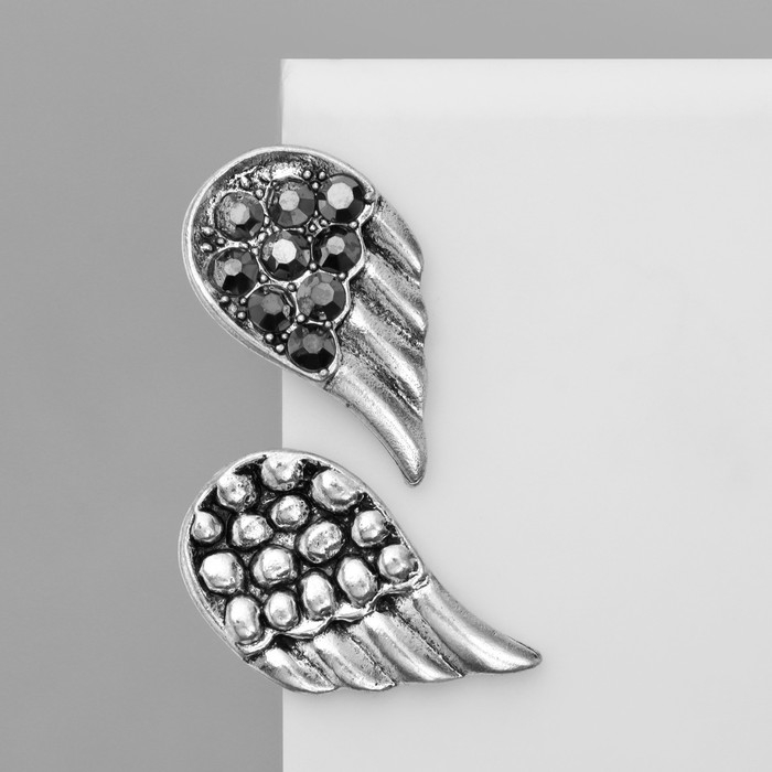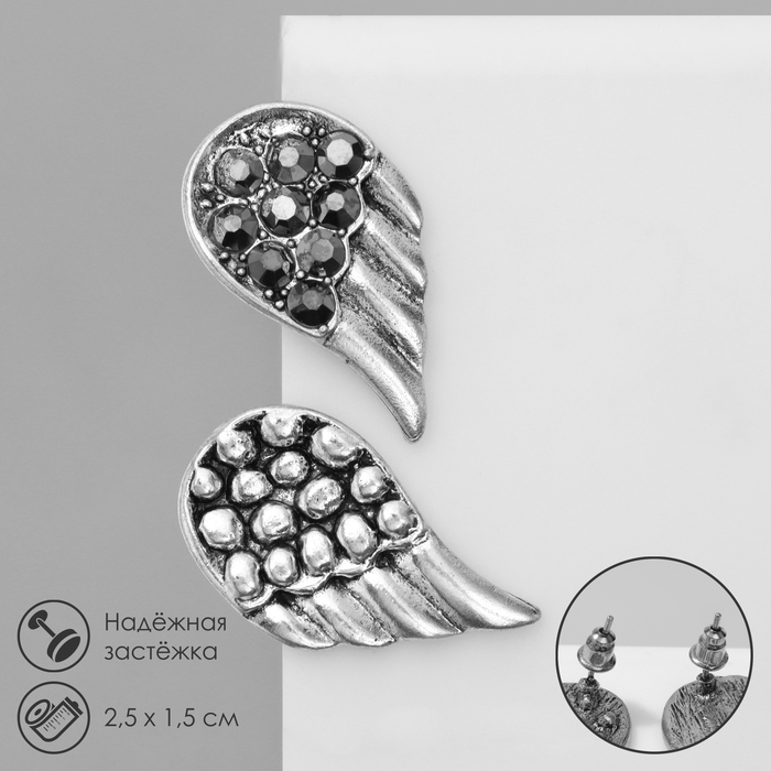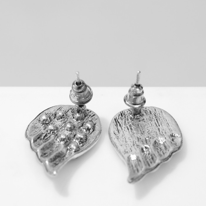 Серьги «Крылья» ангела, цвет серый в чернёном серебре