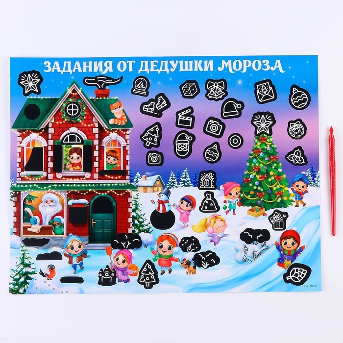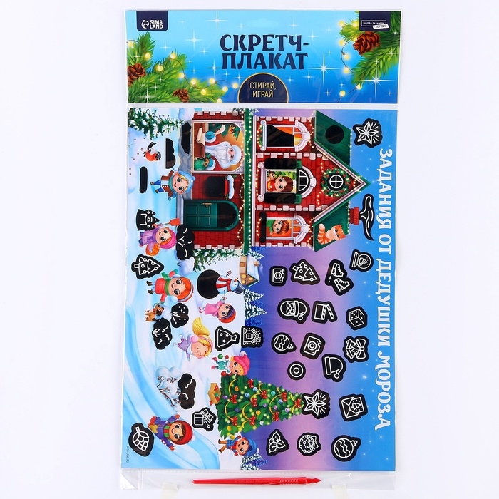 Скретч-плакат на новый год «В гостях у Дедушки Мороза» с клапаном, А3