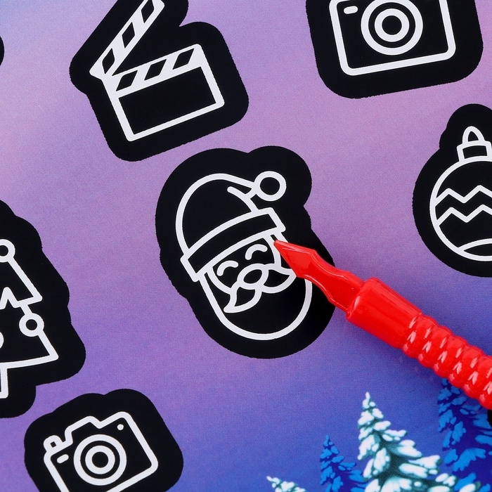 Инструкция: отрежьте кусочек клейкой ленты ( в набор не входит) и приклейте декор, плотно прижав его на 2-3 секунды. Стирайте монетной чёрный скреч-слой и узнавайте что под ним пряталось!