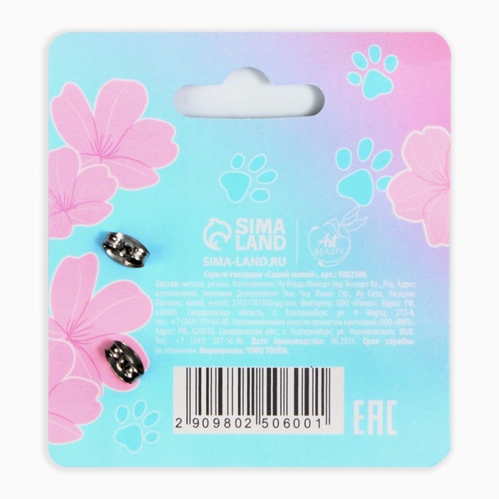 Серьги гвоздики «Самой милой» 6 х 6,5 см