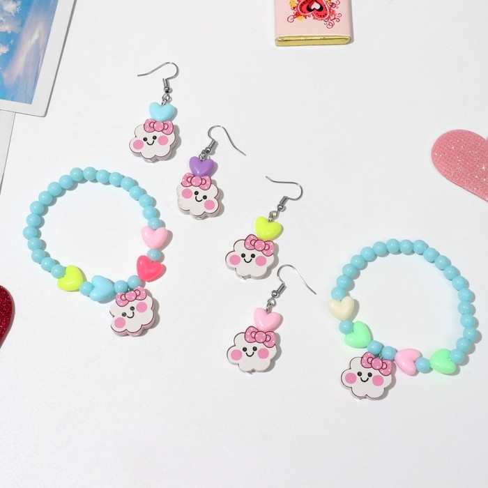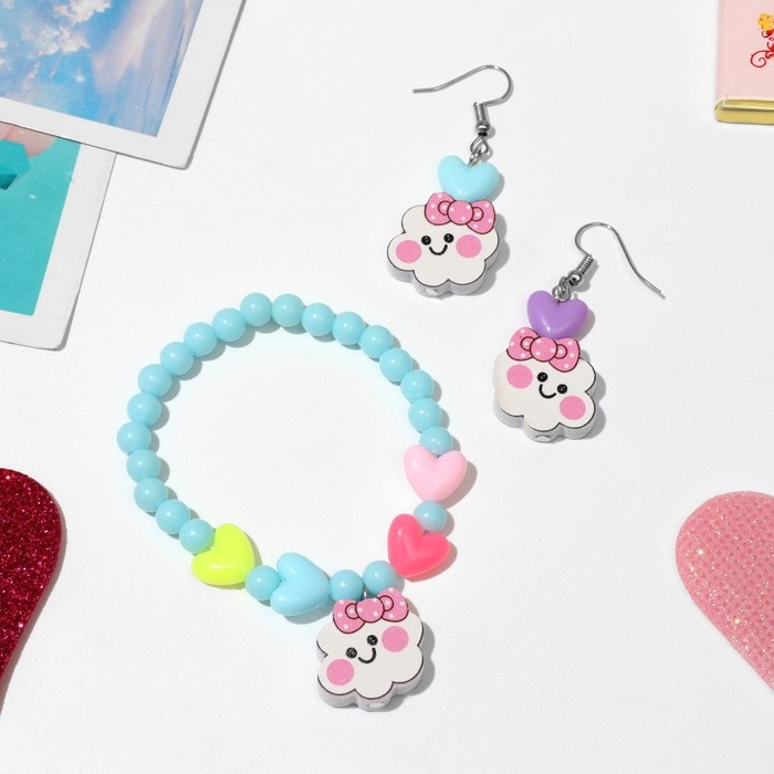 Набор детский «Выбражулька» 2 предмета: серьги, браслет, облачка, цвет МИКС