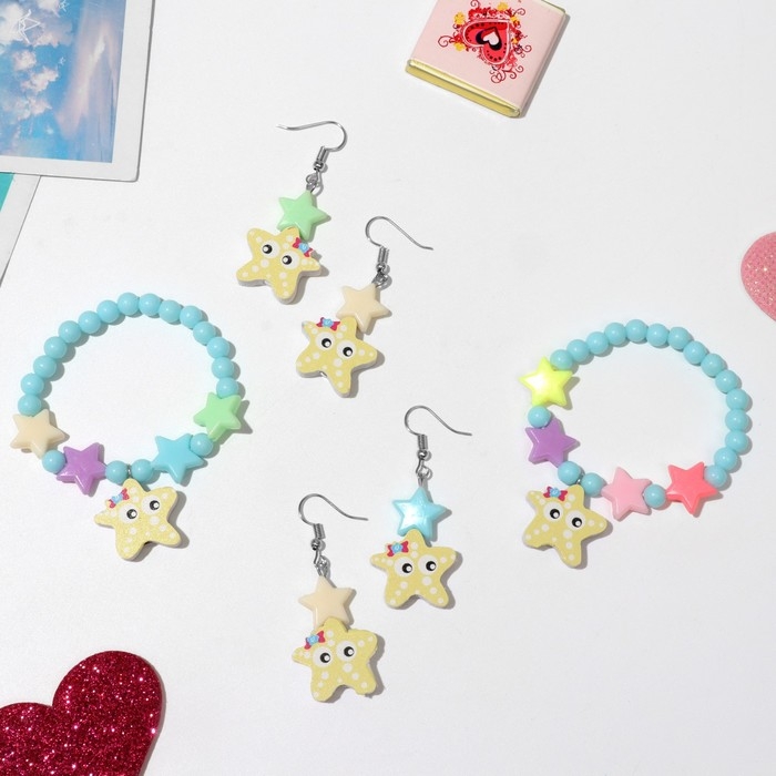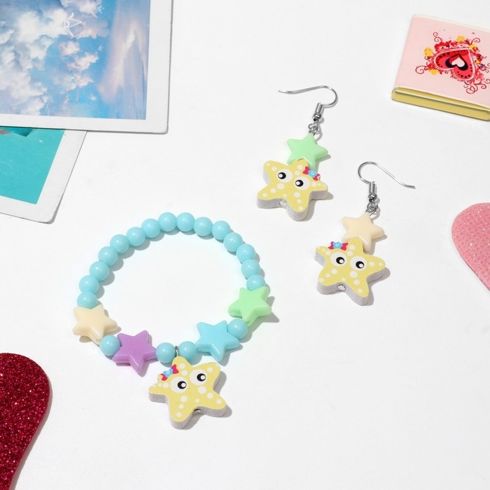 Набор детский «Выбражулька» 2 предмета: серьги, браслет, морские звёздочки, цвет МИКС