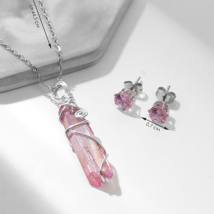 Гарнитур 2 предмета: серьги, кулон «Сверкание», цвет розовый в серебре