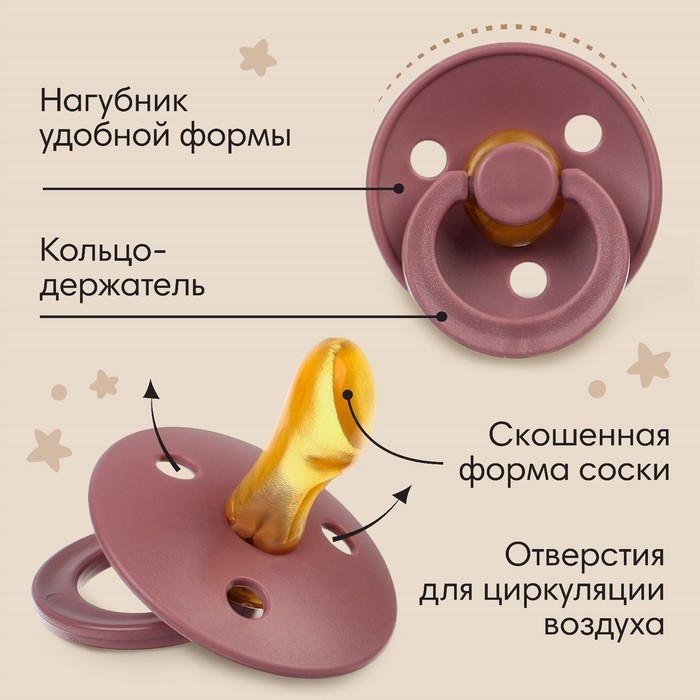 Набор сосок - пустышек из латекса, от 6 мес., ортодонтические, 2 шт.