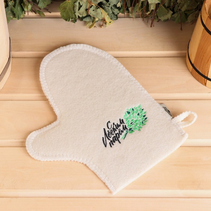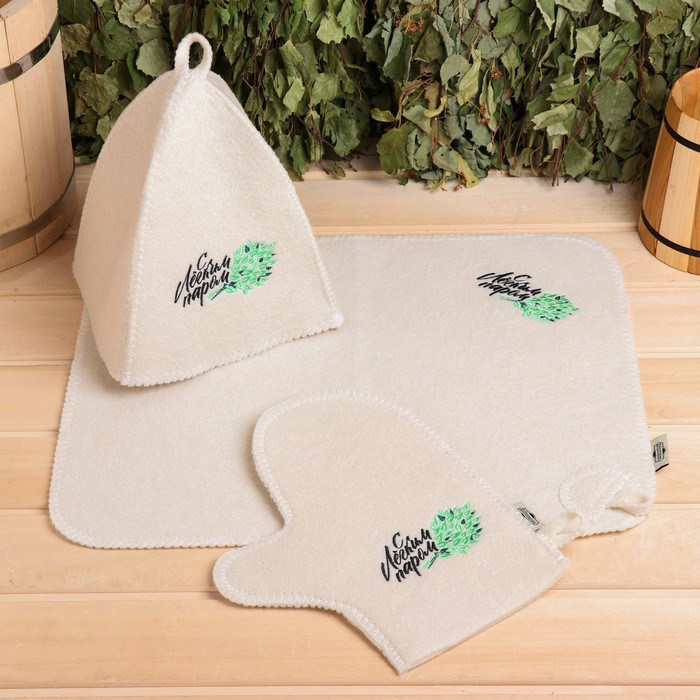 Набор банный 3 предмета "С Лёгким паром, с веником", белый, в плёнке
