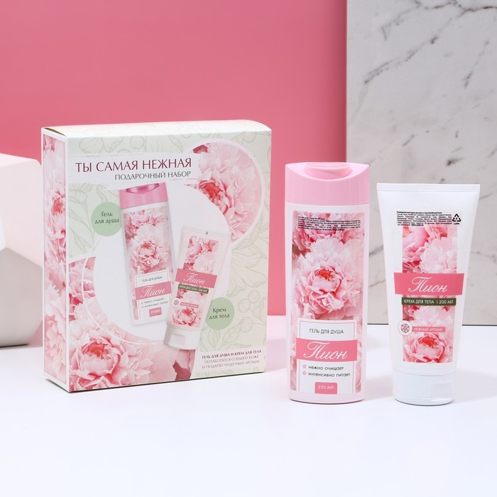 Подарочный набор косметики «Ты самая нежная!», гель для душа 250 мл и крем для тела 200 мл , ЧИСТОЕ СЧАСТЬЕ