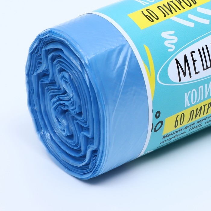 Мешки для мусора в рулоне "UpakLand" 60 л, голубые,ПНД, толщина 15 мкм, 30 шт