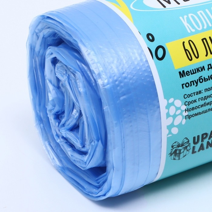 Мешки для мусора в рулоне "UpakLand" 60 л, голубые,ПНД, толщина 8 мкм, 50 шт