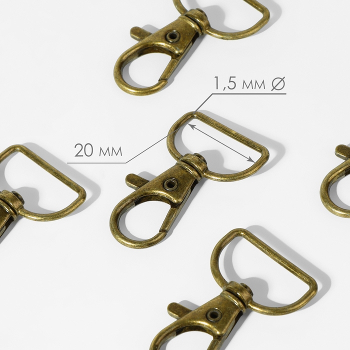Карабин металлический, 39 × 24 мм / 20 × 1,5 мм, 6 шт, цвет бронзовый