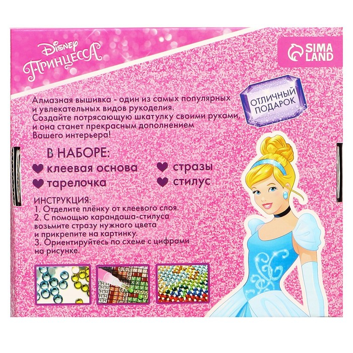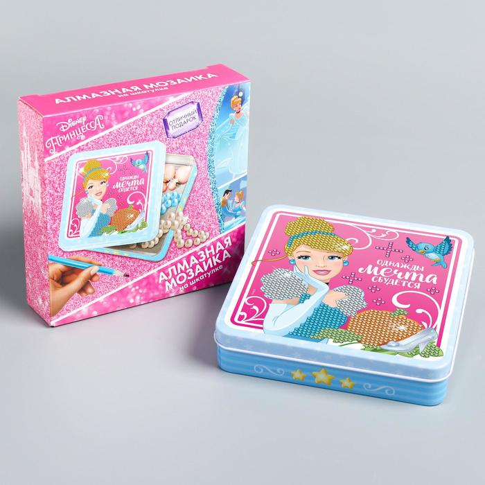 Алмазная мозаика на шкатулке, 14х14 см, Принцессы