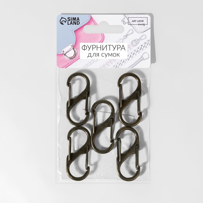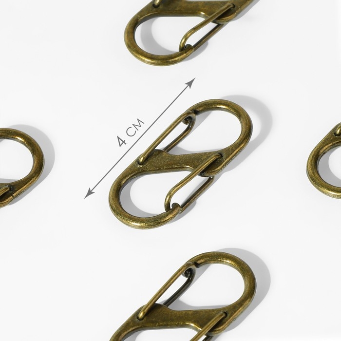 Карабин металлический, двойной, 40 × 18 мм, 5 шт, цвет бронзовый
