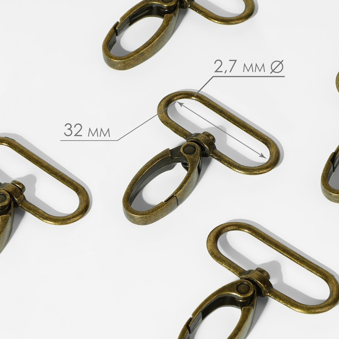 Карабин металлический, 45 × 38 мм / 32 × 2,7 мм, 10 шт, цвет бронзовый