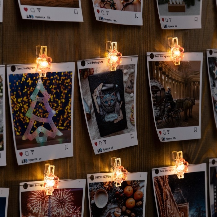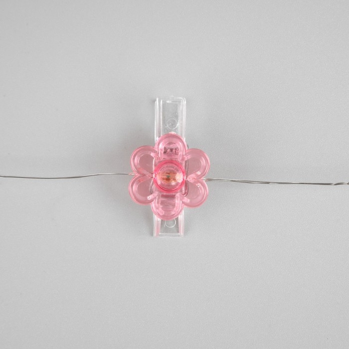 Гирлянда «Нить» 2 м роса с насадками «Прищепки-цветы», IP20, серебристая нить, 20 LED, батарейки ААх2 (нет в комплекте), свечение тёплое белое