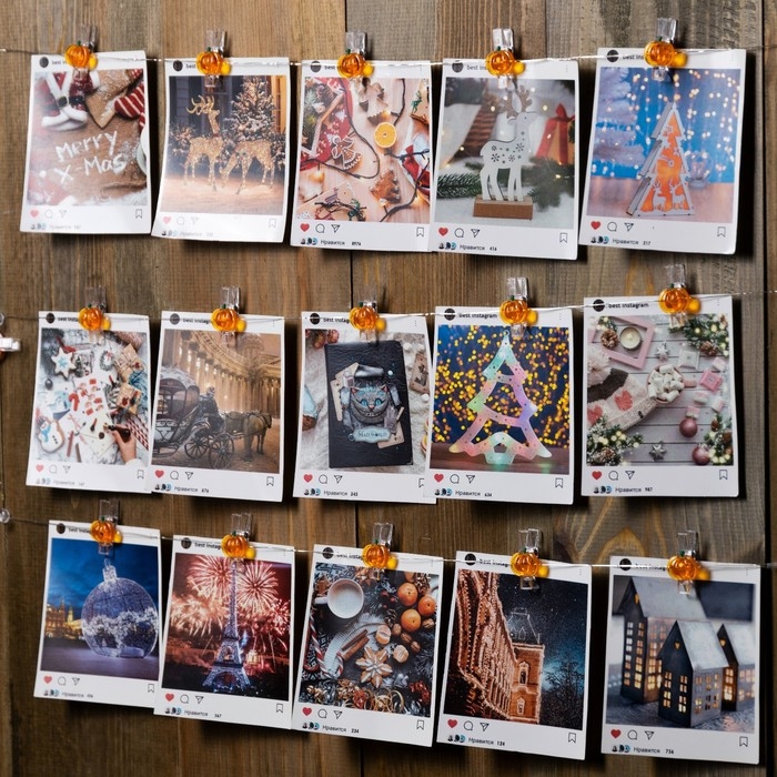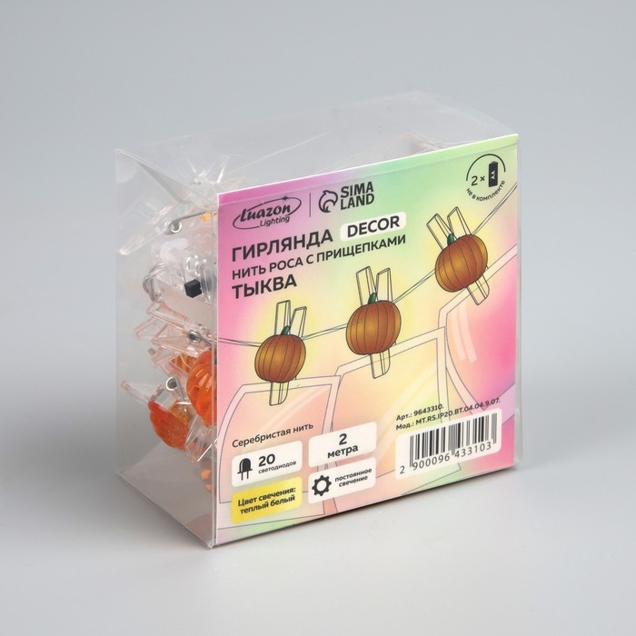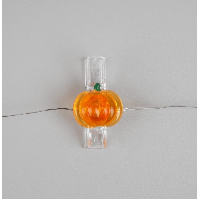 Гирлянда «Нить» 2 м роса с насадками «Прищепки-тыквы», IP20, серебристая нить, 20 LED, батарейки ААх2 (нет в копмплекте), свечение тёплое белое