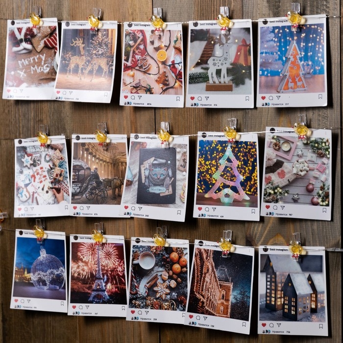 Гирлянда «Нить» 2 м роса с насадками «Прищепки-цыплёнок», IP20, серебристая нить, 20 LED, батарейки ААх2 (нет в комплекте), свечение тёплое белое