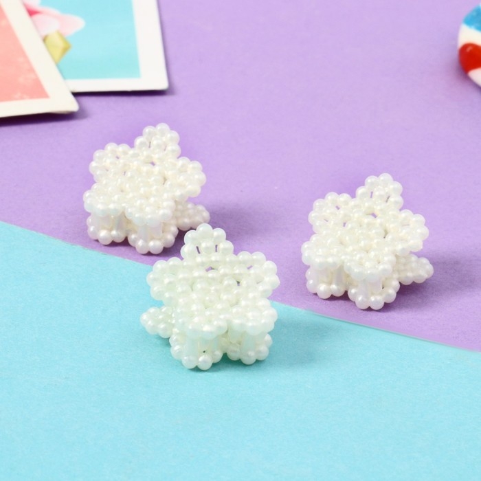 Краб для волос "Беатрис зайка" (набор 5 шт) ромашки, 3 см, белый