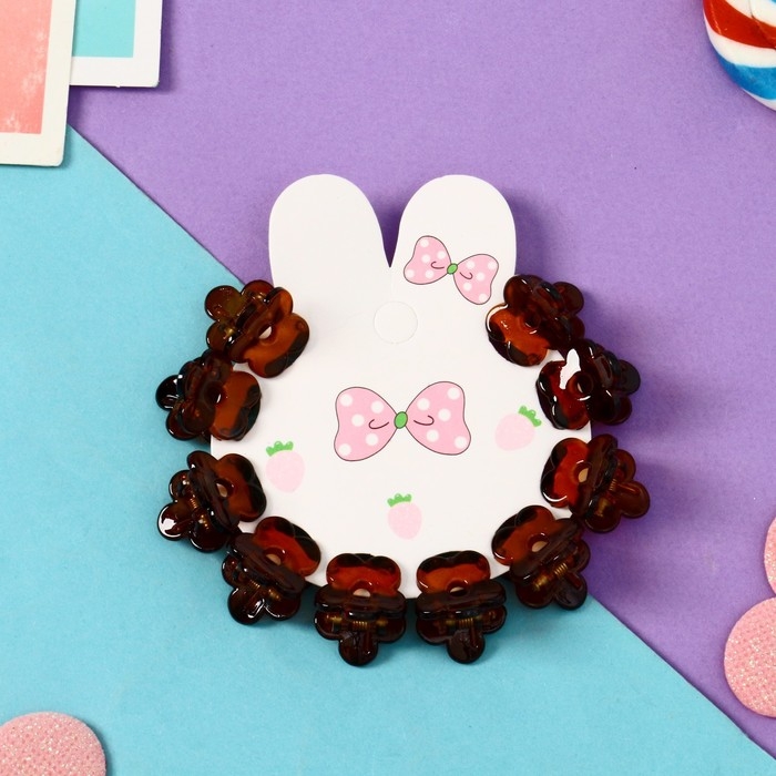Краб для волос "Соня" (набор 10 шт) ромашка, 1,5 см, коричневый