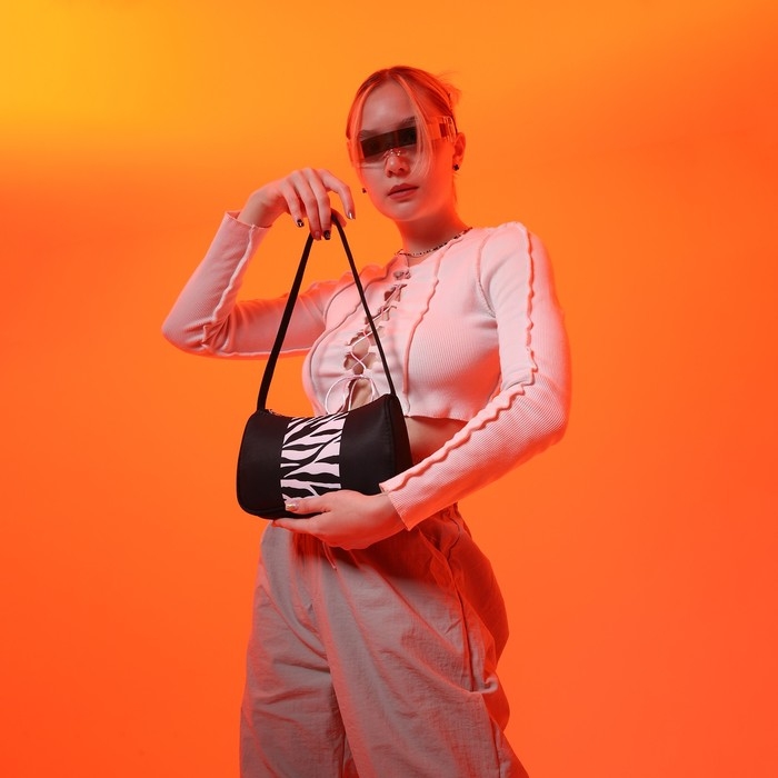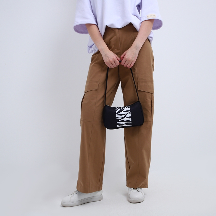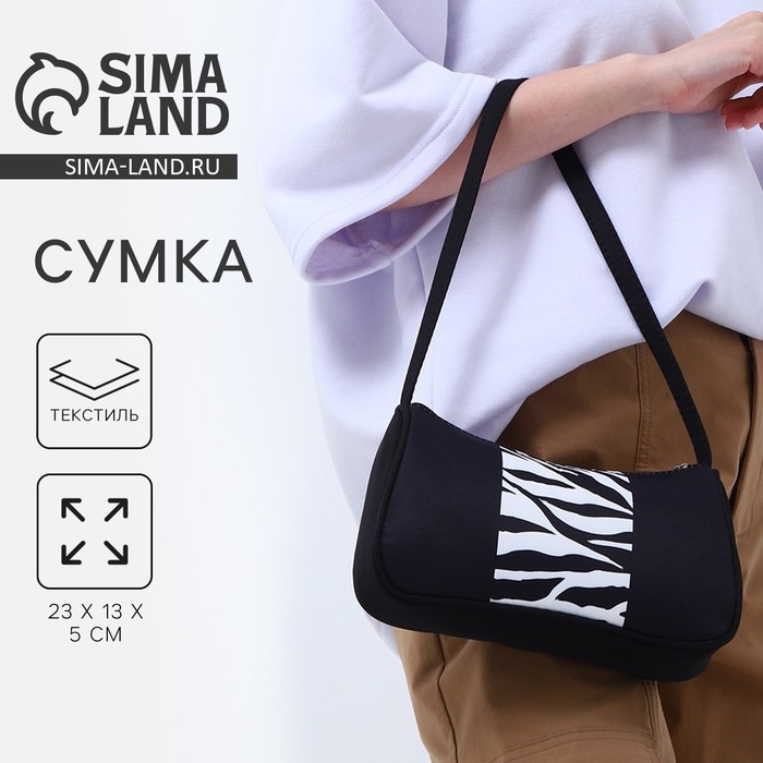 Сумка женская багет из текстиля, «Зебра», 23х13х5 см.