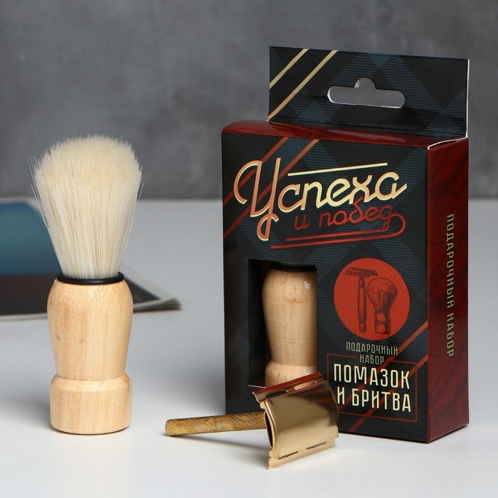 Подарочный набор помазок и бритва «Успеха и побед», 8,1 х 13 см