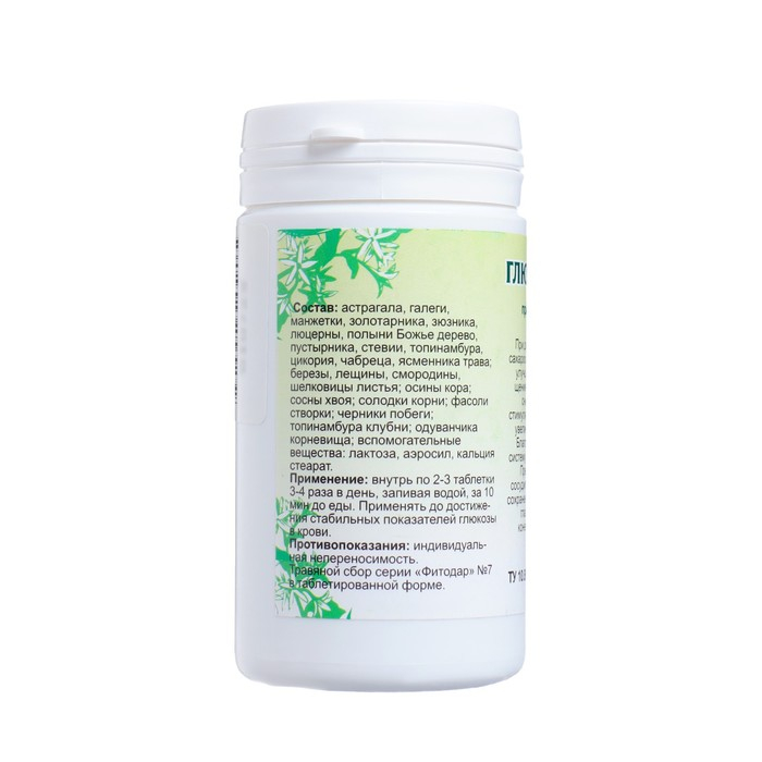 Состав: березы, лещины, смородины листья, галеги, дербенника, зюзника, люцерны, манжетки, первоцвета, полыни Божье дерево, пустырника, топинамбура, цикория, чабреца трава, ели хвоя, осины кора, солодки корни, фасоли створки, чага, черники побеги, вспомогательные вещества: лактоза, аэросил, кальция стеарат.